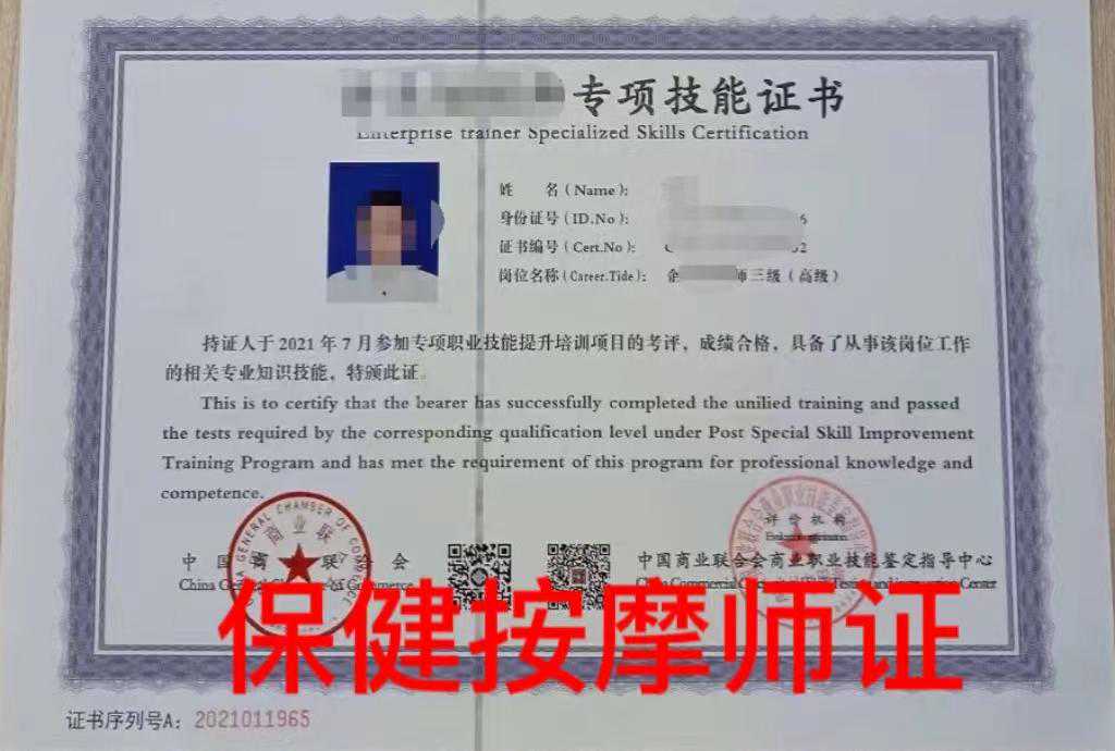 要想知道保健按摩师证书在哪里查询呢,就得先知道保健按摩师证是由哪个部门颁发的,小编今天给大家分享的是市面上比较常见的,含金量高、具有权威性的,由中国商业联合会商业职业技能鉴定指导中心考核颁发的保健按摩师专项技能证书!