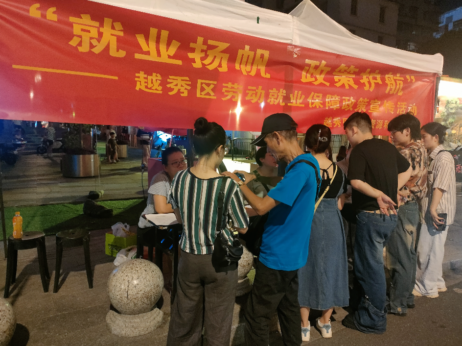 在一众车尾箱摊档中,“越秀区就业创业社保政策”摊位尤为亮眼,现场为各类求职群体和企业提供贴心的就业服务,将政策、服务直接送到群众身边,吸引众多市民驻足咨询。这是7月8日晚,府学西街夜市上“就业扬帆政策......