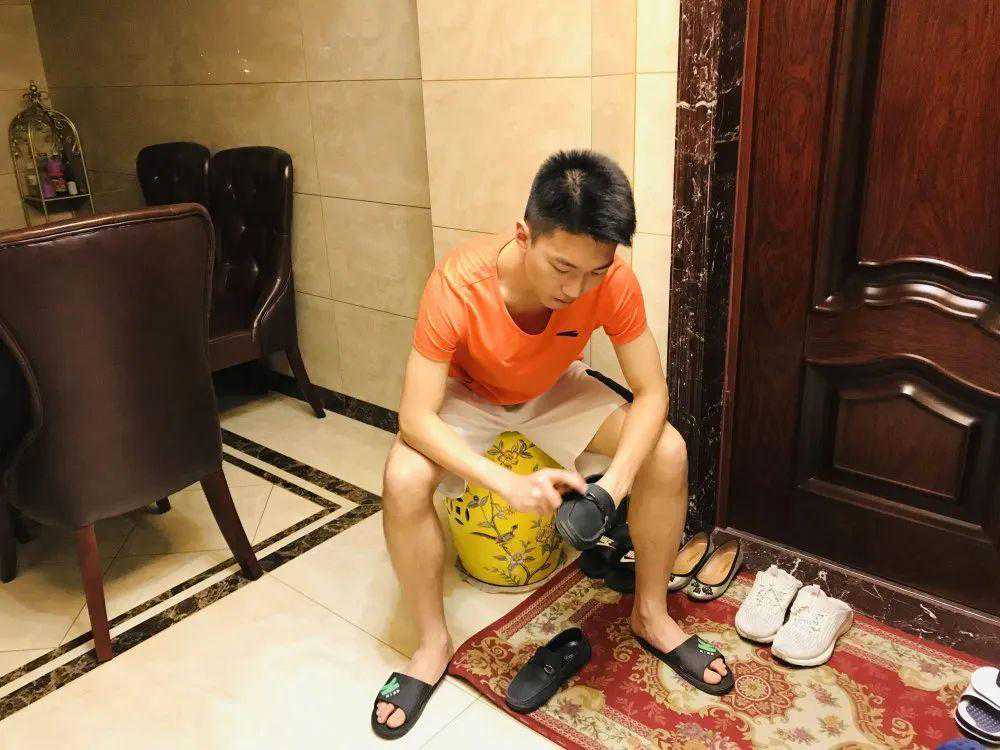 为父母擦皮鞋