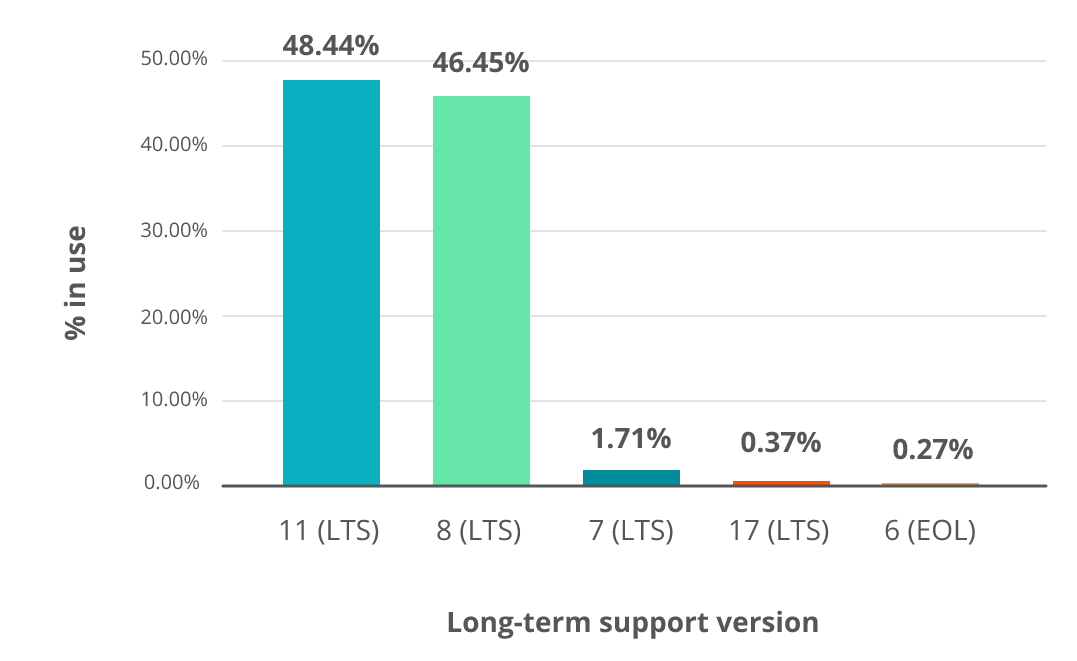 每个JavaLTS版本的使用百分比