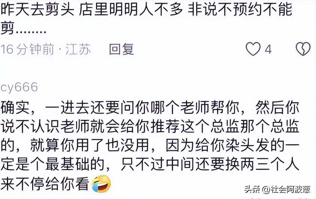 选择了所谓的“总监”后,他不是简单地询问小李想要什么样的发型,开始对小李的头发评头论足,说这颜色不适合他,太老气了。小李被这突如其来的专业分析弄得有点不知所措,只能尴尬地笑。