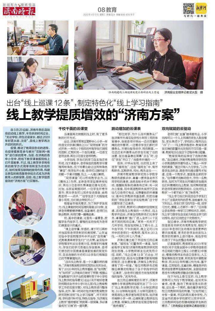 疫情,推动了教育信息化的进程,也促使着教育参与者对“互联网+教学”进行新的思考。当前,在济南的各中小学中,把线下教学课表搬到线上已不是难事,不过,线上教学并非将传统的教学方式简单地转变为在线形式,如何发挥互联网的独特作用、构建出新型的教育服务供给方式成为济南教育人的新探索,目前,线上教学提质增效的“济南方案”已见雏形。