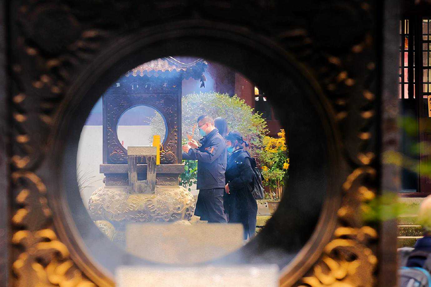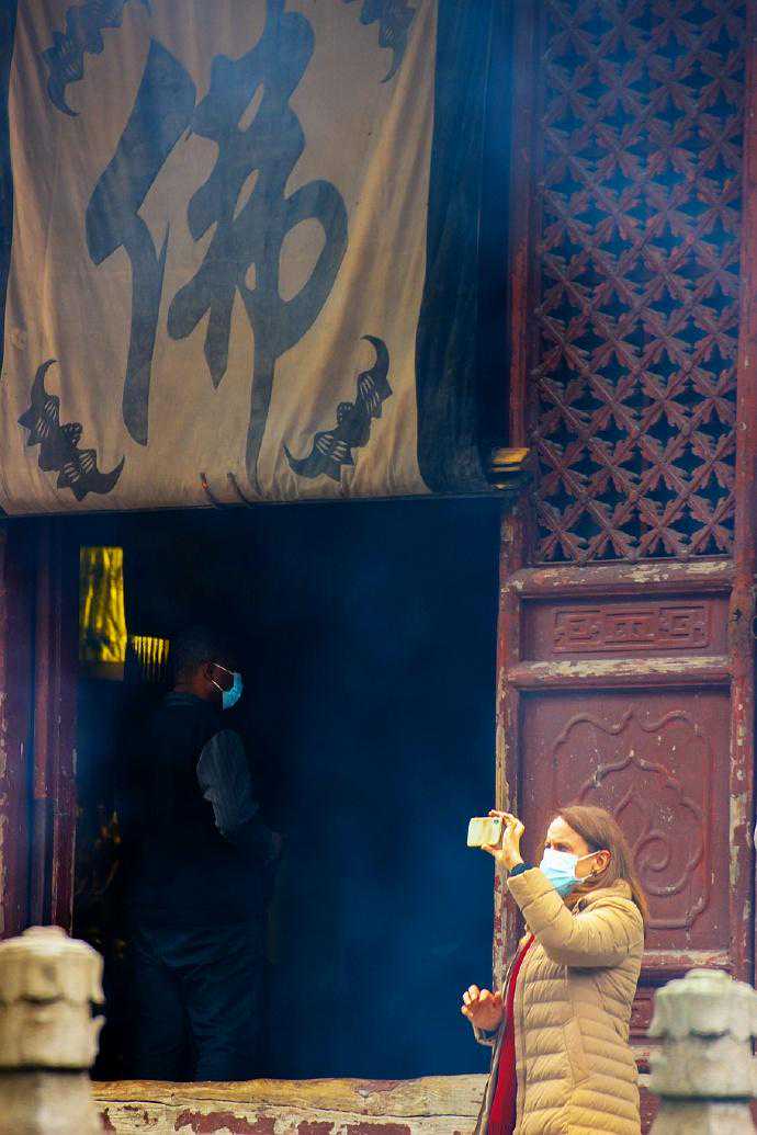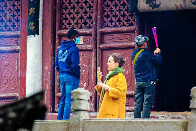 在寺院内巧遇一排外国旅客,他们是来参加【相聚浙里——国际人文交流周】活动的。