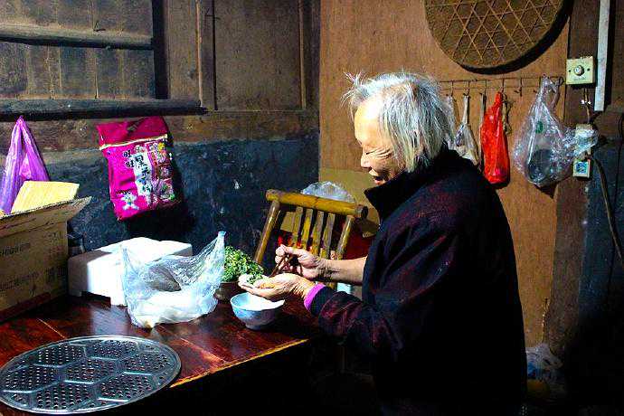 这家阿婆正在包水饺。45分钟的走村串门收获了不少,这些画面对于生活在大都市的城市人来说,真的很难看到。