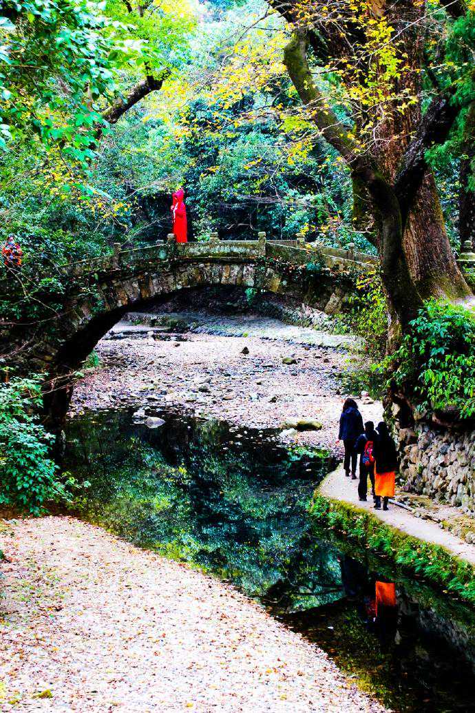 进国清寺必经一座凉亭,亭叫“寒拾亭”,边上有一座石拱桥,桥名叫“丰干桥”,是纪念唐代三位高僧寒山、拾得和丰干的。