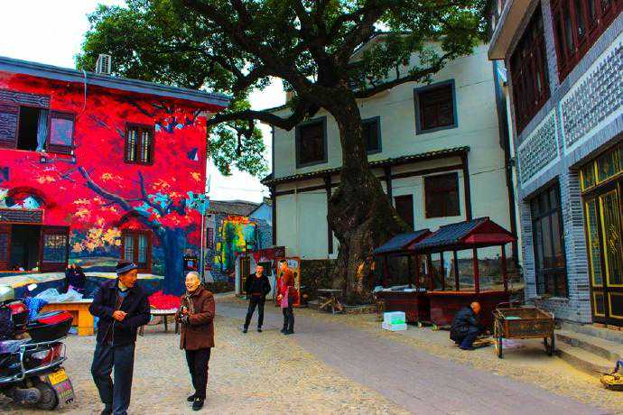 入村口,一株千年古樟映入眼帘,数位老人在树下歇息。