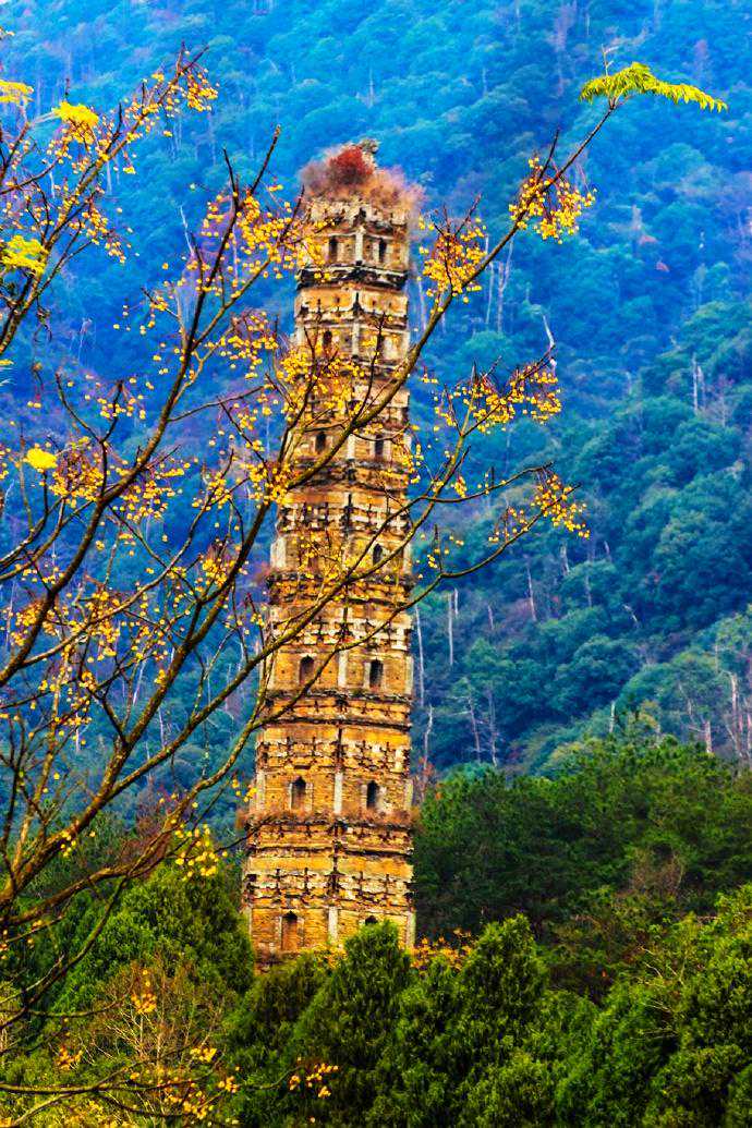 隋塔,因始建于隋开皇年间,故称隋塔。隋塔,位于天台县城东北方向山区,是国清寺的标志建筑物,距今1400多年。塔身黄褐色,高59.3米,六面九级,空心,砖壁。壁上佛像栩栩如生,极为精美。隋塔建造别致,塔顶上没有塔头,从塔内仰望可见蓝天。