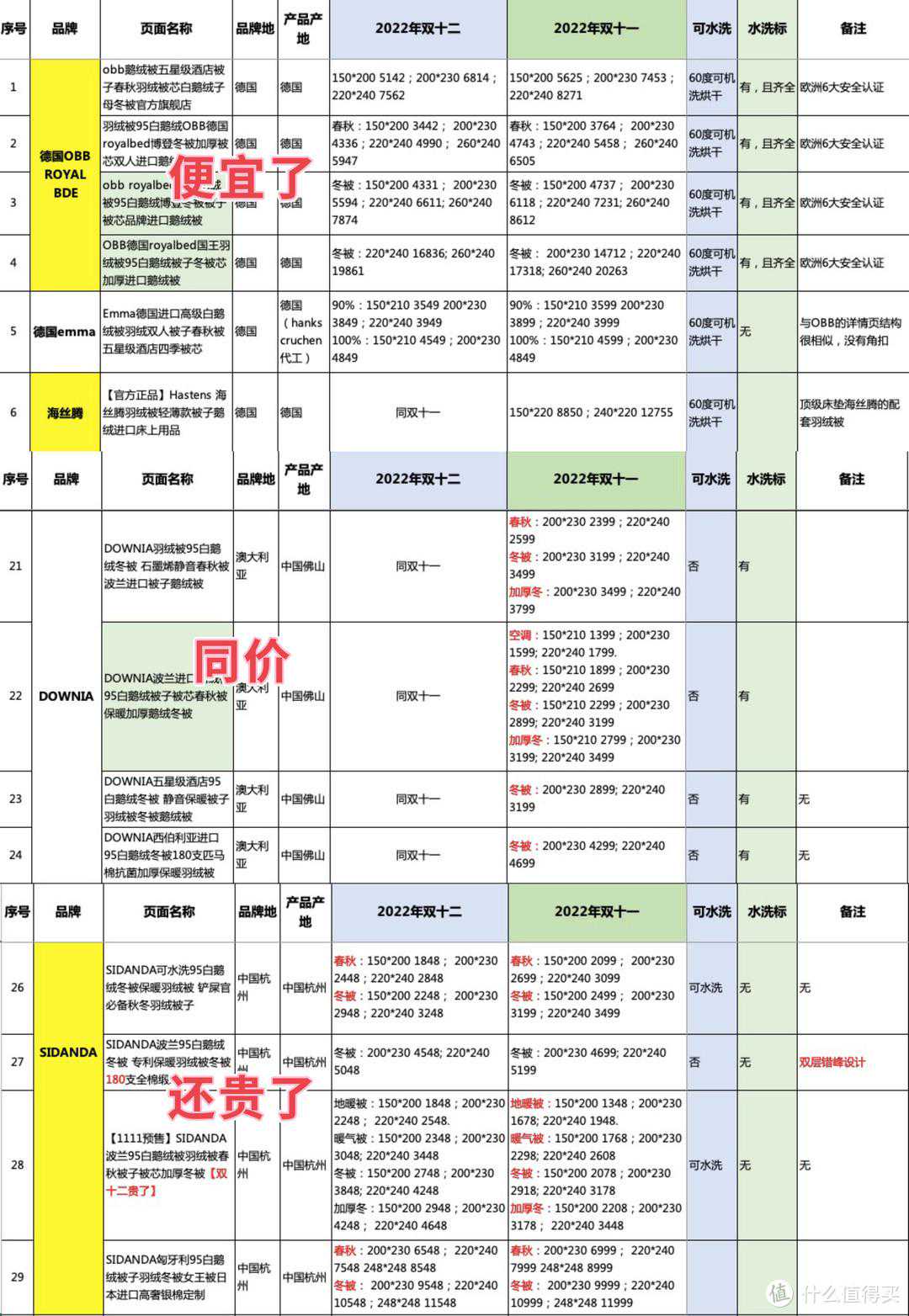近百款羽绒被的价格,追踪了2年。完整表格如下: