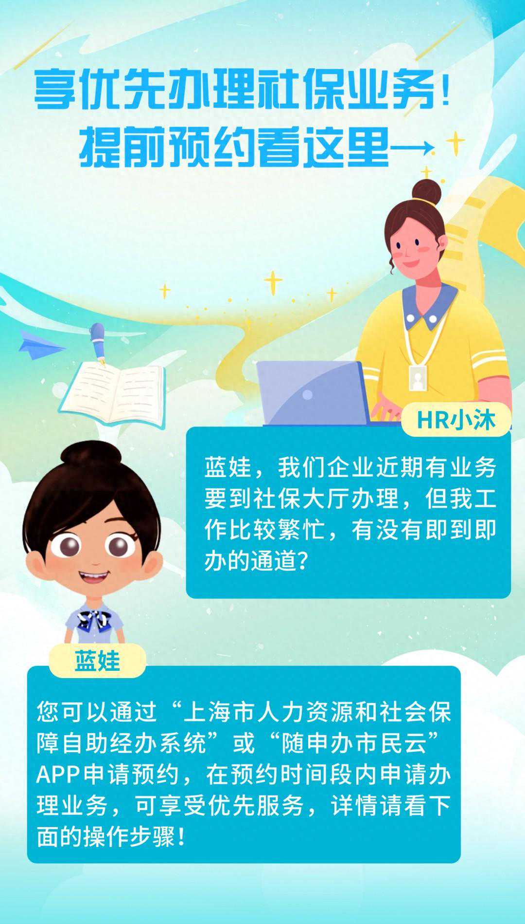 方法一:“上海市人力资源和社会保障自助经办系统”网上预约01第一步单位登录“上海市人力资源和社会保障自助经办系统”(网址:)。02第二步03第三步04第四步方法二:“随申办市民云”APP、微信和支付宝......