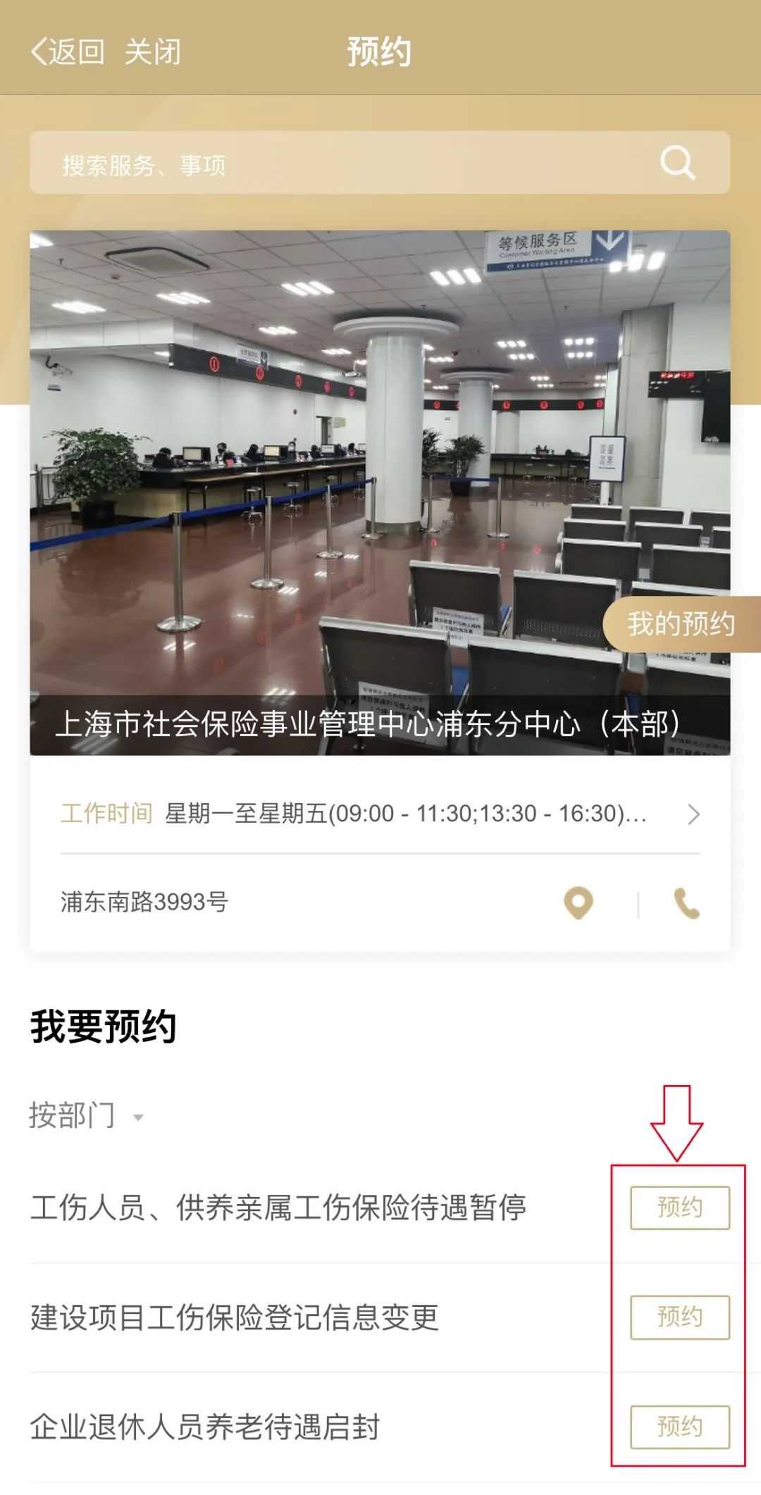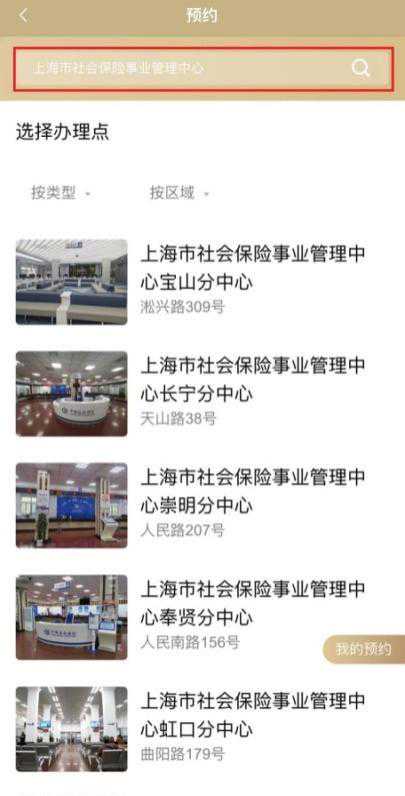 进入预约界面,在搜索栏双击编辑,输入“上海市社会保险事业管理中心”,下拉选择需前往办事的分中心。