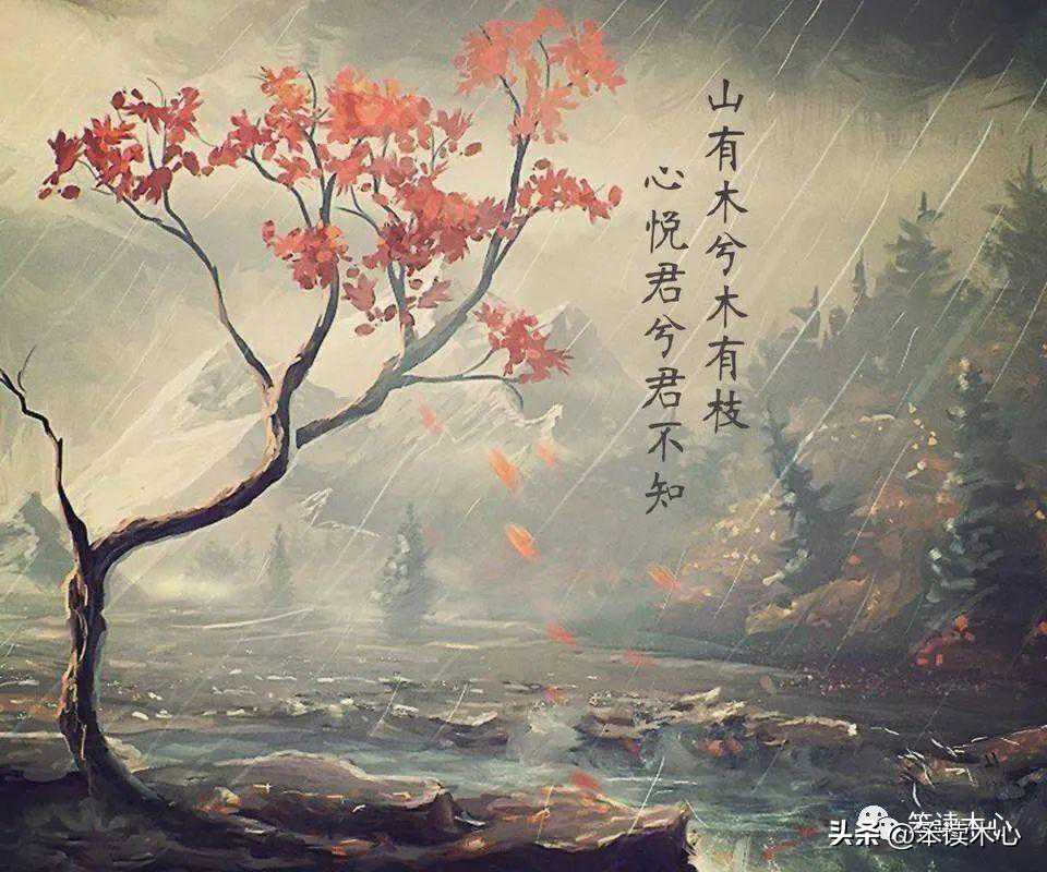 这首总体四言古体诗,木心在诗文后自述衷肠,意为对光华澄澈的爱的追念和歌颂。跨越阶级甚至跨越世俗性别之分的爱恋,在先民元气淋漓的歌声中封存,穿越千年时光,木心先生化身修缮古董的画匠,以灵气笔触和无尚的爱意,为人性中至善至美的一腔赤诚勾勒出童话结尾似的唯美画卷。