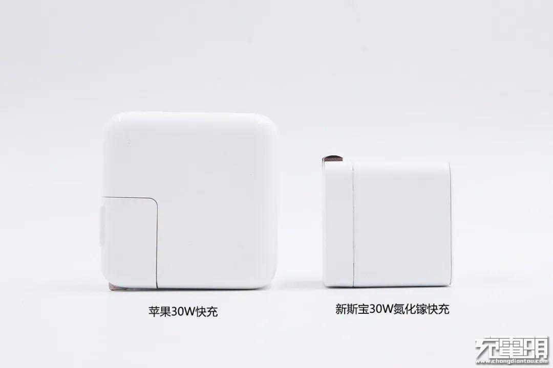 新斯宝30W氮化镓快充充电器采用PC材质外壳,折叠插脚的设计,让这款充电器的便携性更好。这款产品外观尺寸仅为40×40.5x28mm,非常小巧,同时采用独特的灌胶工艺,使得产品散热性能更佳。