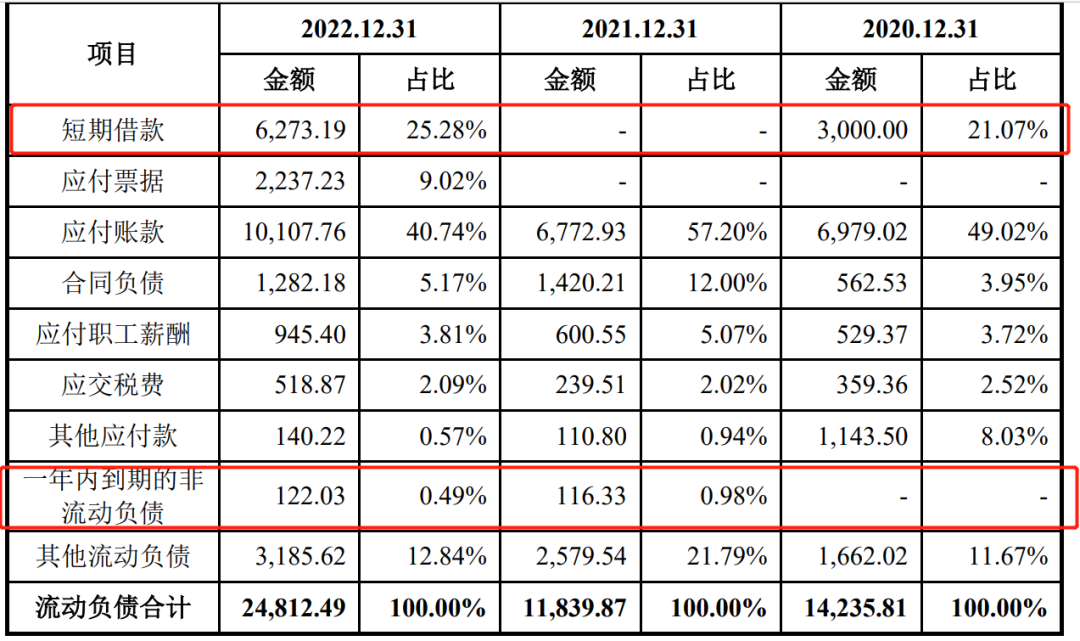 招股书显示,截至2022年2月31日,公司的货币资金为4481.56万元,短期借款高达6273.19万元,一年内到期的非流动负债122.03万元。