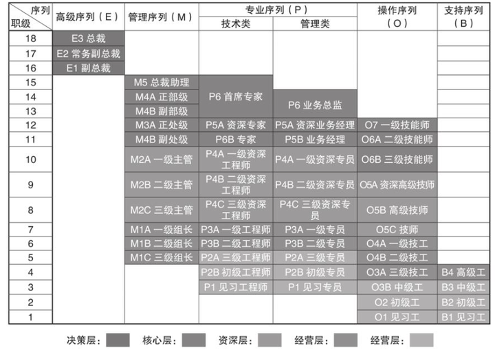 即职级体系即员工职业发展通道让组织中的员工清晰知晓自己所处职位的位置和未来职业发展的方向与岗位,一般都会制定一个切实的员工职级体系表。