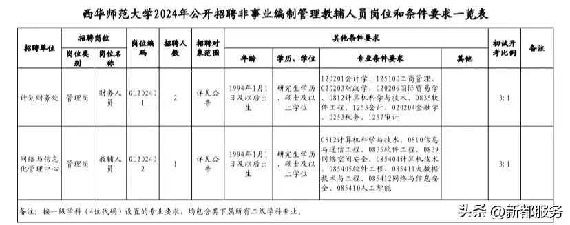 西华师范大学2024年5月公开招聘管理教辅人员公告根据《事业单位人事管理条例》《事业单位公开招聘人员暂行规定》和《四川省省属事业单位公开招聘工作人员实施细则(试行)》等有关规定,我单位拟面向社会公开招......