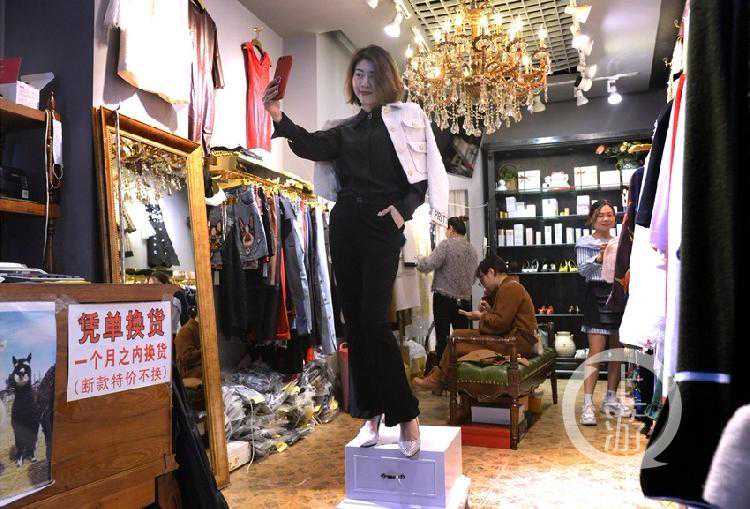 “化妆只要5分钟,1分钟穿一套衣服。”脱下大衣,换上长裙,踩上高跟鞋,只有1米6的彭林立即换了一个模样。“这款卖了4件了,有三个颜色,还没得一个人来换货!”