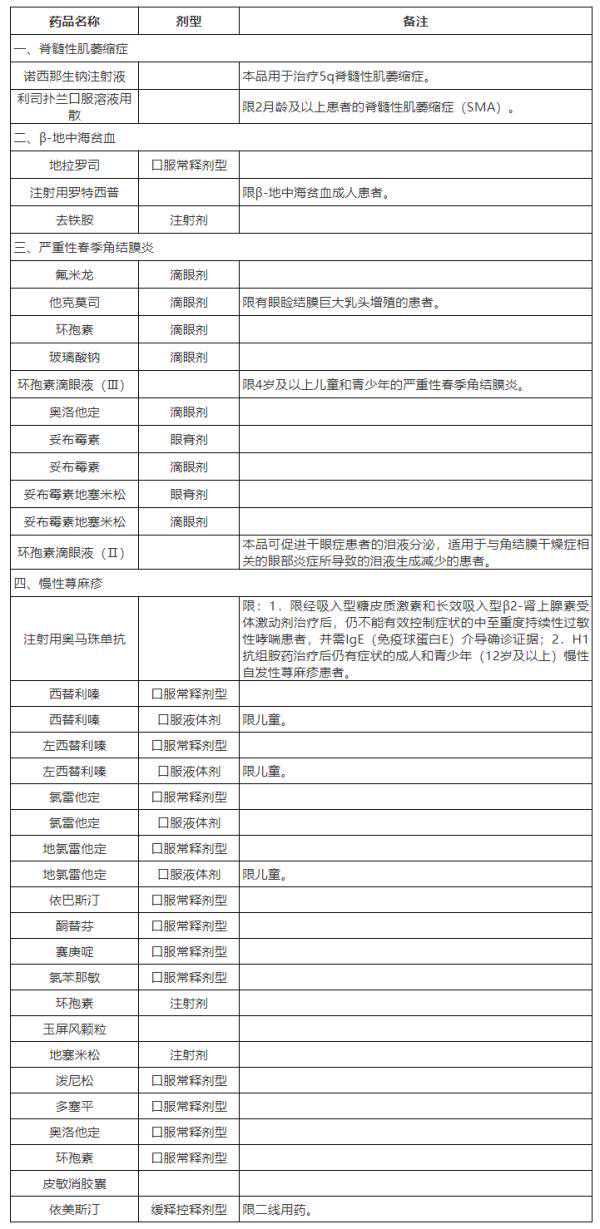 一、扩大病种保障范围。立足参保群众基本医疗需求,在组织专家评审论证的基础上,将脊髓性肌萎缩症、β-地中海贫血、严重性春季角结膜炎、慢性荨麻疹4种疾病纳入我省基本医保门诊慢特病病种范围,执行统一的认定标准、门诊药品目录及基本医保报销限额。参保患者经认定符合病种标准的,可按规定享受慢特病门诊医疗保障待遇。