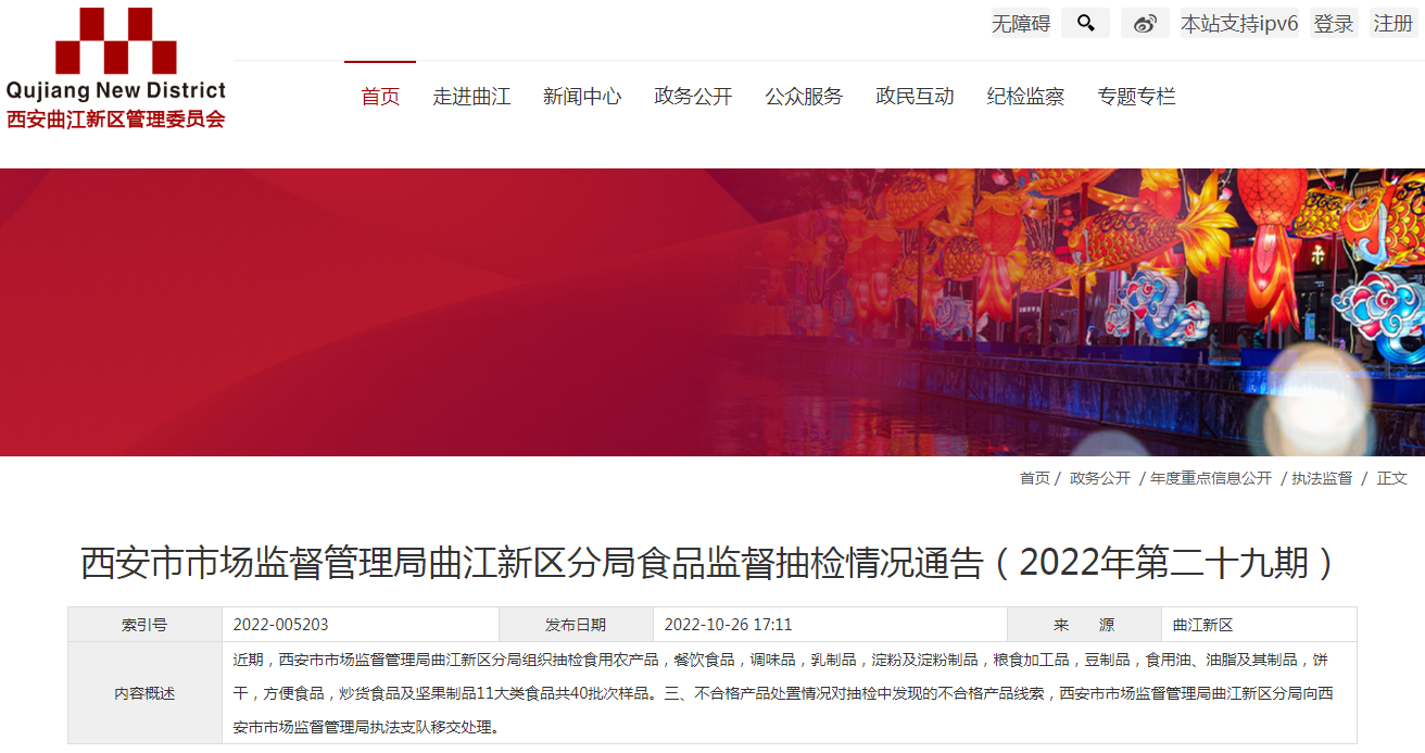 中近日,西安市市场监督管理局曲江新区分局发布食品监督抽检情况通告(2022年第二十九期)。