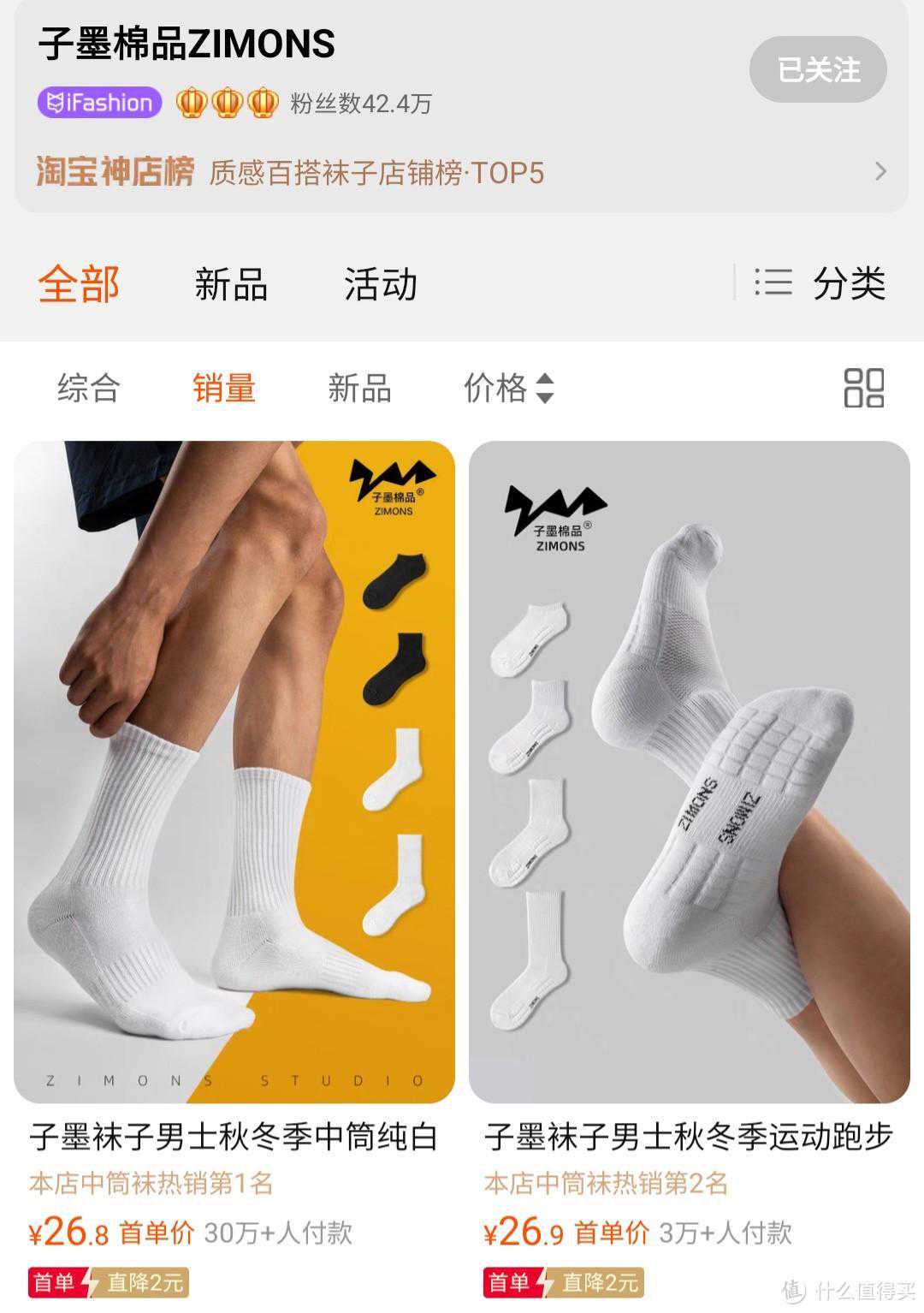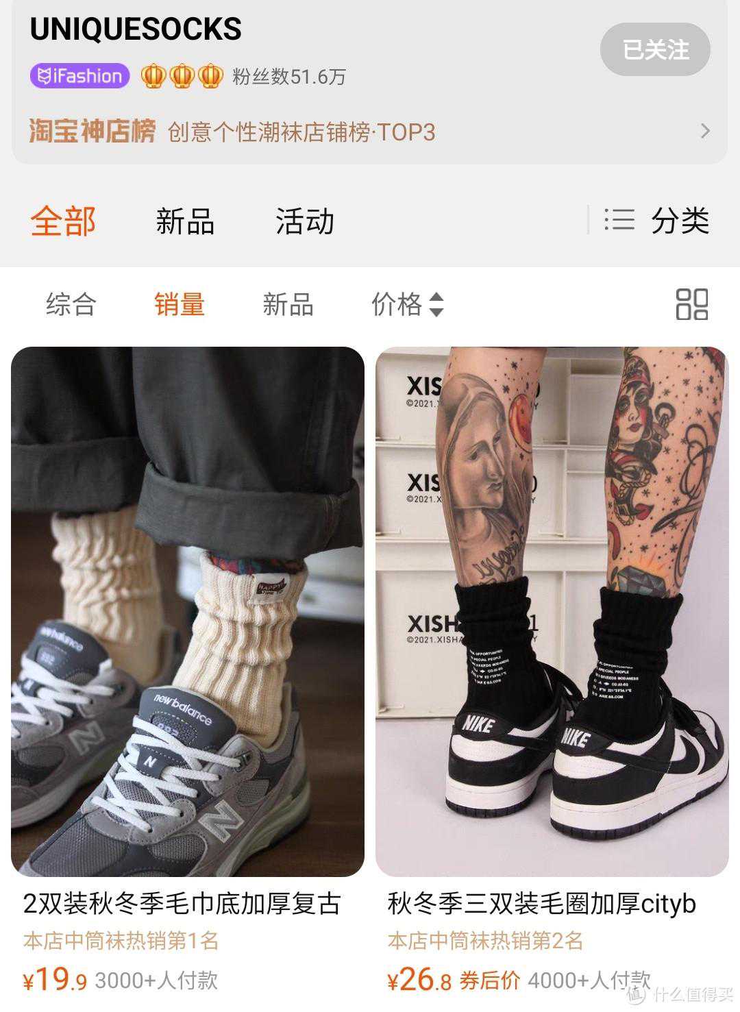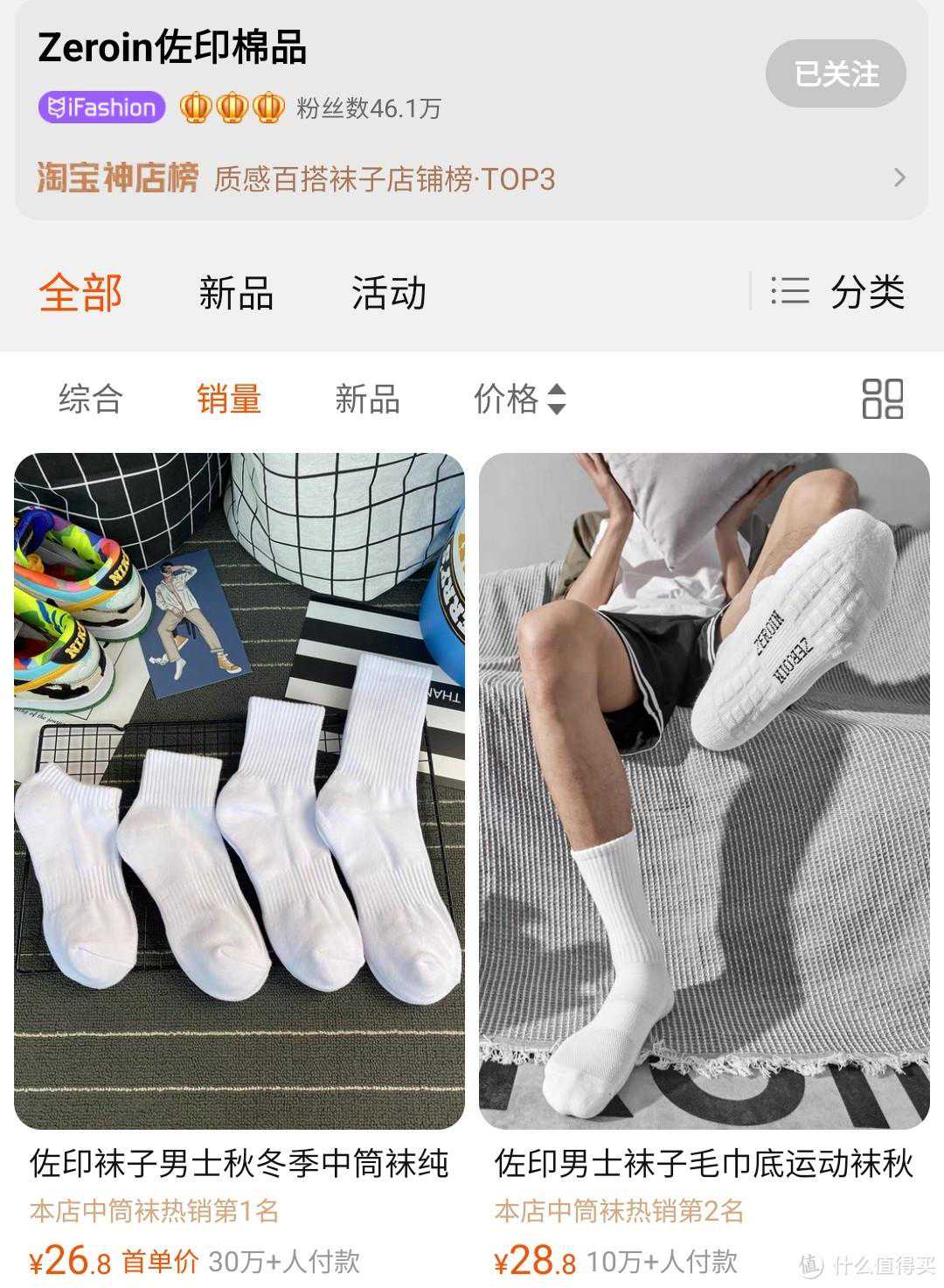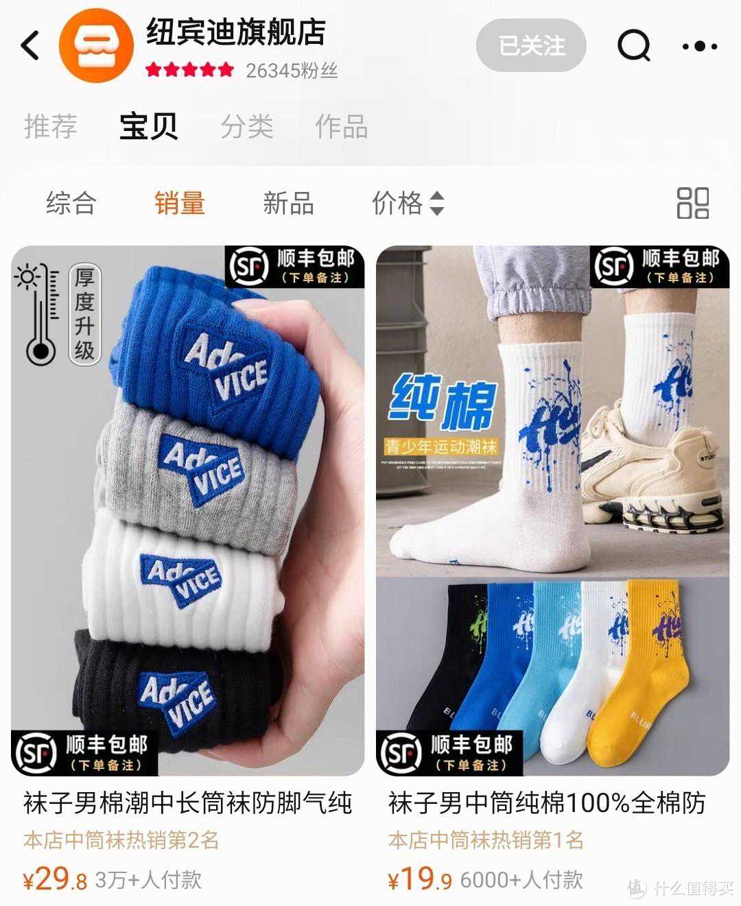 第1家就是王炸存在,这是淘宝神店排行榜的第3名,前两名都是女士的袜子,这一家最大的特色就是自有品牌且销量巨大,第一款已经卖了30万➕如果你是喜欢穿基础款,而且有着品质要求的话,这家的袜子可以闭眼入!