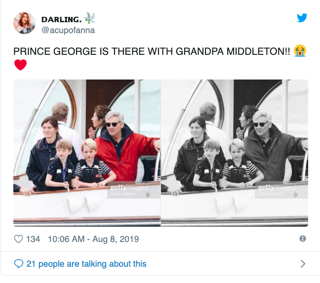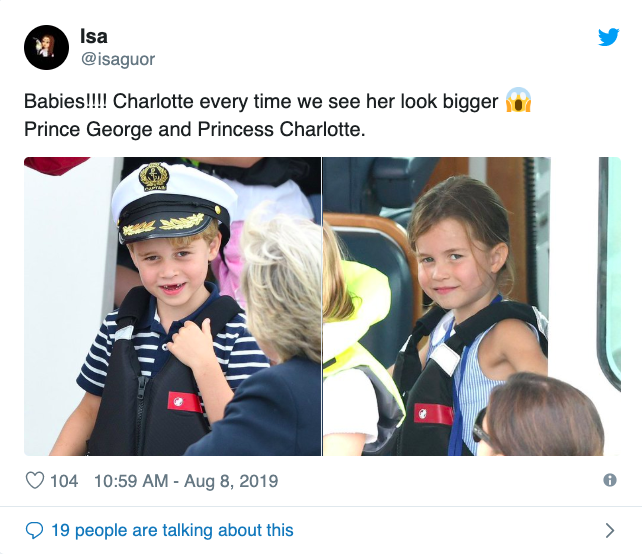 皇家记者艾米莉·纳什在她的推文中称,乔治和夏洛特“在考斯的海滩上度过了一个愉快的早晨,参加了家庭活动,包括与'海盗皮特'的拔河比赛,以及下午比赛前的魔术表演。”据报道,小兄弟路易王子也在那里。