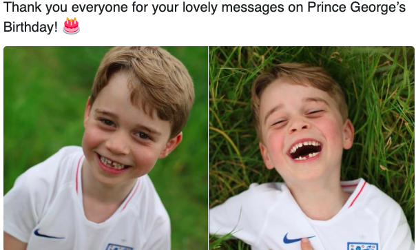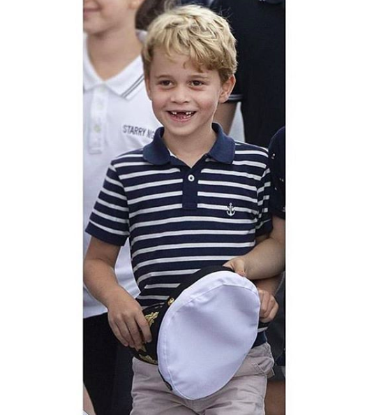 自7月22日的六岁生日铺出几张肖像图后,20天不见,乔治王子的两颗门牙都掉了,稳健进入换牙期。