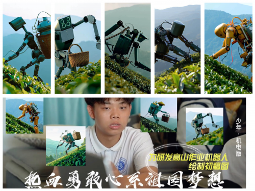根据当地产业发展需求,新疆学生带领团队全体成员,走访当地多家农户调研,连日来凌晨4:30动身徒手攀上海拔1000多米的茶山,实地考察记录地形和环境,在学校党委领导、团委组织、专业教师指导三方合力组建“攀山希望”研发团队,初步完成操作性强、实用性高、可落地的“山体作业机器人”雏形。目前,这款山体作业新突破的智能机器人已进入实体建模阶段。