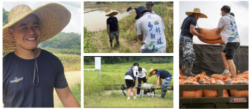在茂名程村遇见从广州黄埔军校教官返乡做农田无人机飞防服务的职业“飞手”的刘冬阳。二十岁出头,皮肤黝黑,脸上总是挂着灿烂的笑容,与当地农民打成一片。当谈起部队服役经历,他如数家珍;当谈起返乡做起新农人,他自信且自豪地说:“无人机飞防服务是运用现代科技力量更精准高效帮助农作物健康生长,帮农户保证收成,需要专业执业资格的技能人才操作;退役后我依然爱国,只是换个领域,在国家需要我的地方继续做出贡献。我为成为新农人而自豪。”在茂名寻访新农人那几天,正遇台风来袭前的收割旺季,突击队成员在新疆同学的带领下主动提出和刘冬阳一起帮助当地村民抢收稻谷,在短短的几个小时共协助抢收10吨稻谷。