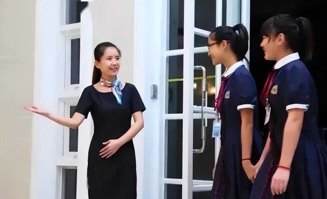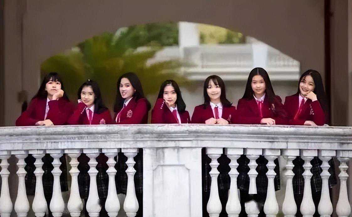 白衬衣加黑色伞型半裙,白袜搭配统一黑色小皮鞋,衬得女生们柔美恬静。据说,该校的校服有15种款式,一年四季有运动装、休闲装、制服、淑女装多套搭配。