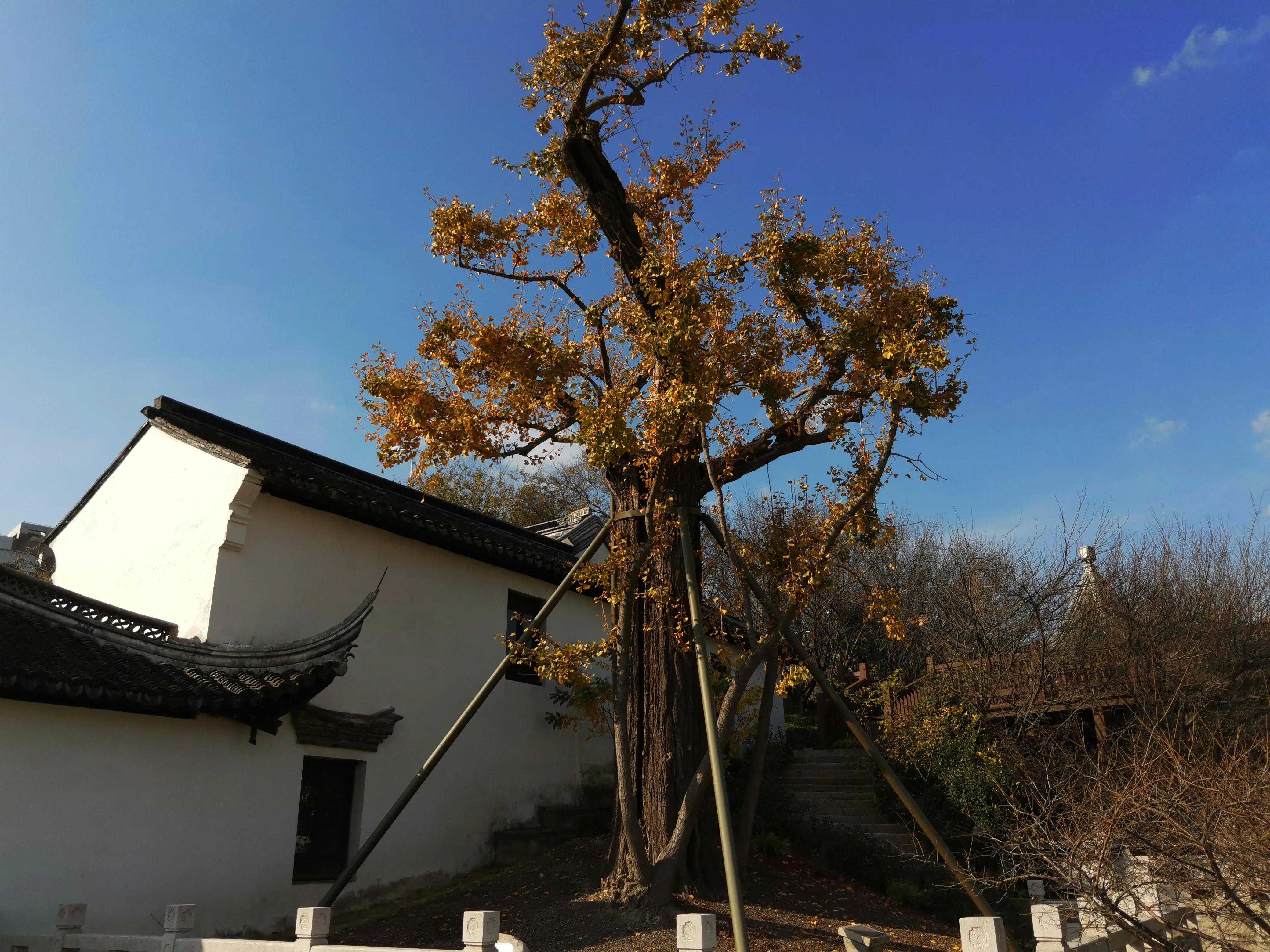 据资料记录,这里原有一座规模颇大的寺庙——建于明代的东王庙,后因战火被毁,两棵银杏便流落民间,虽被录入上海市古树保护名录,但实则性保护还是近几年被重视的,记得5年前我第一次去观赏这两棵古银杏时,还是无人管理的自生自灭状态,这两年建了围墙、锁了门、整理了场地、添种了其他绿植,保证了古银杏的生长环境。