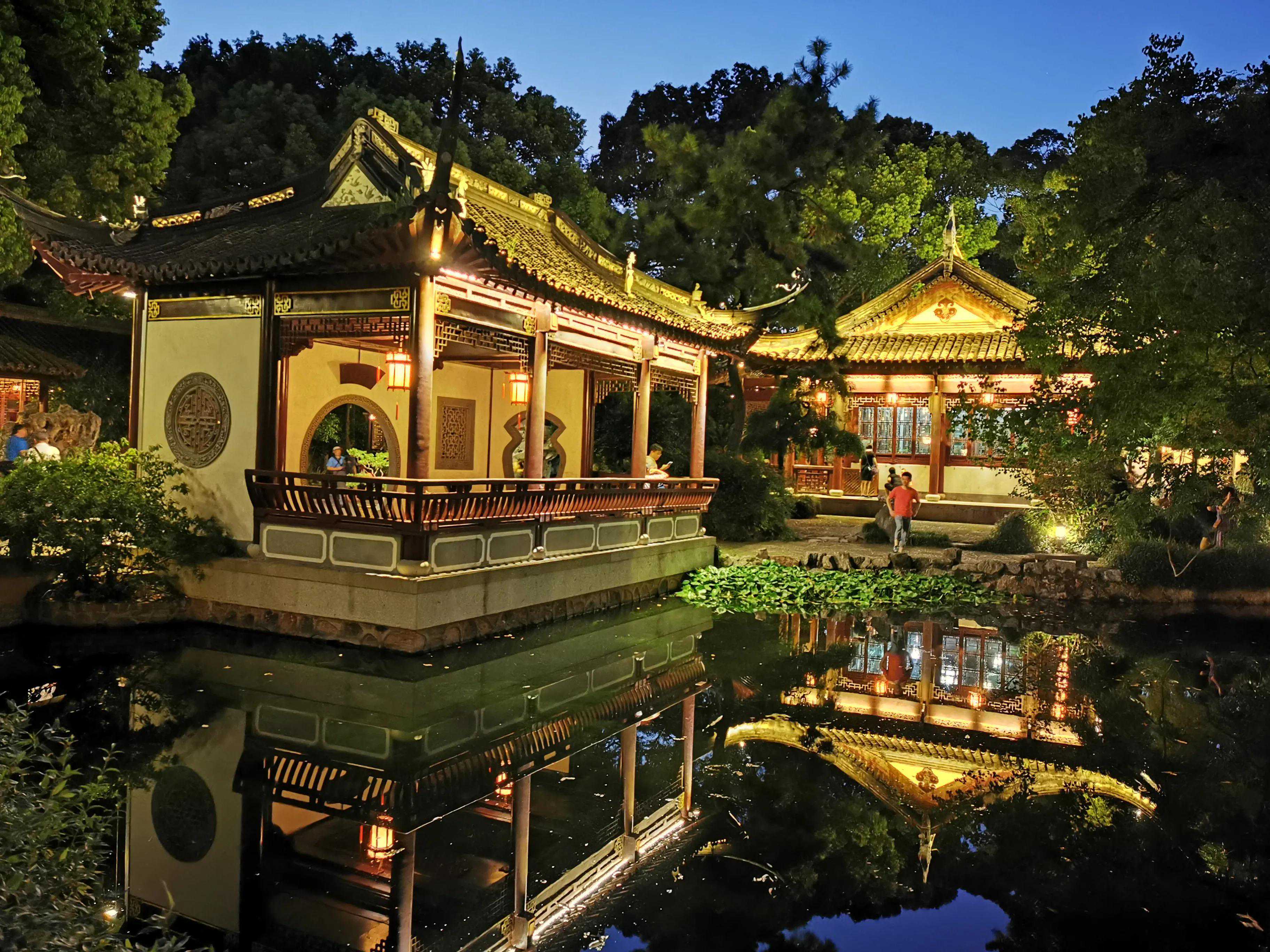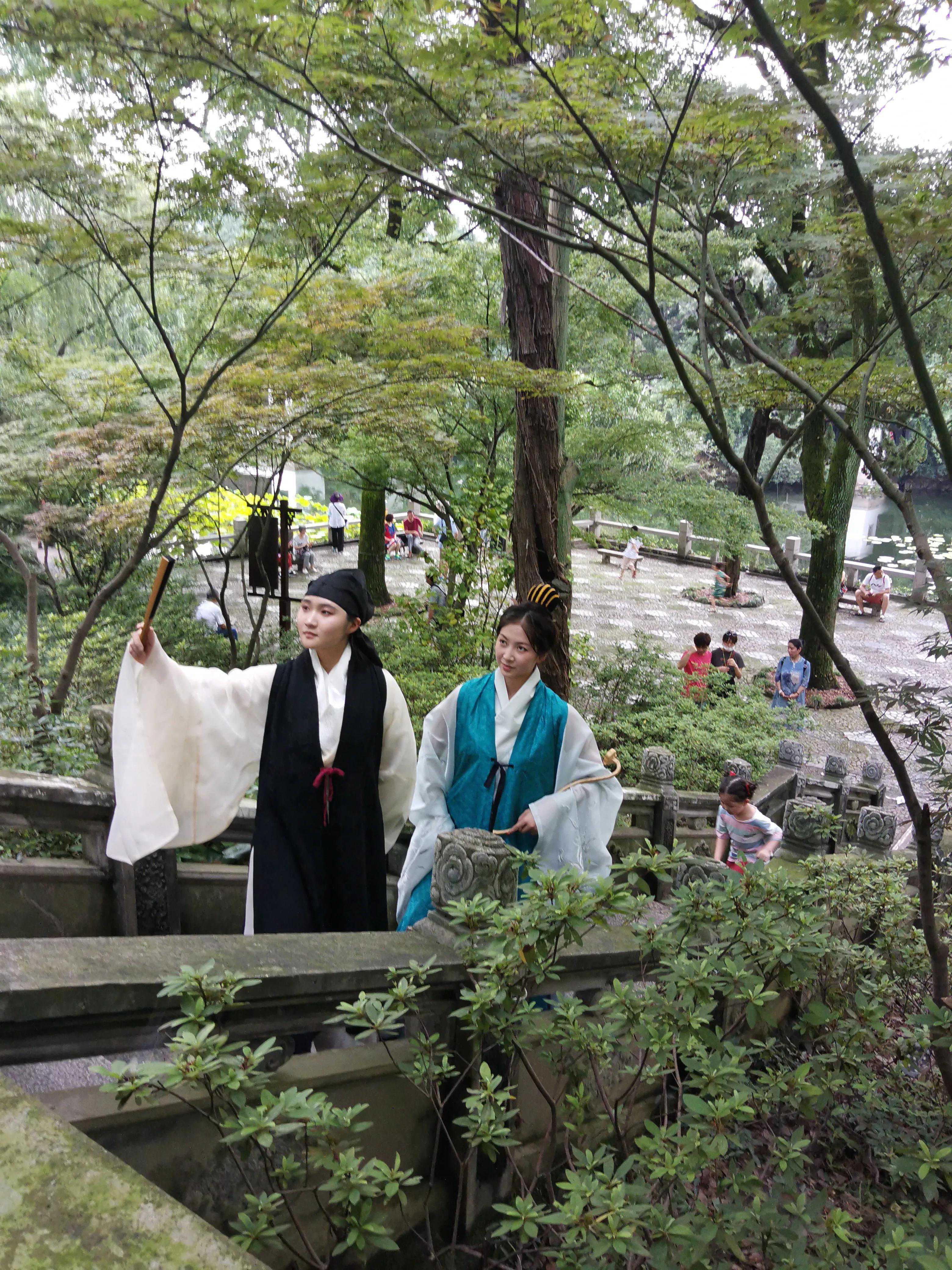 古时汉服真贴切。楼台亭阁江南盛景引来身穿汉服唐装的青年男女来此拍照。