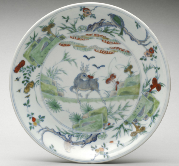 图19:雍正斗彩鹿衔灵芝纹盘,美国费城艺术博物馆藏