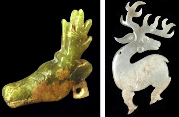对于定居文明的商王朝,鹿在商王的心目中依然是与上天沟通的媒介,所以后来帝辛修筑的观象台取名为“鹿台”,刘向《新序·刺奢第六》载,“纣为鹿台,七年而成,其大三里,高千尺,临望云雨”。《史记·殷本纪》载,“(帝辛)厚赋税以实鹿台之钱”,之所以商王会如此耗费巨资,正是因为鹿台是他与上天沟通的地方。商周之战中,商王兵败后选择自刎的地方便是鹿台,《史记·殷本纪》载,“纣走,反(返)入登于鹿台之上,蒙衣其殊玉,自燔于火而死”,《尔雅》解释道,“祭天曰燔柴”,也就是商王在生命的最后一刻,佩戴着作为祭祀礼器的玉器自焚,完成了向上天最后一次祭拜。周文王建都丰邑后修建了灵台,虽然不再以鹿台相称,但事实上仍然是祭天占卜的场所,《毛诗正义·卷十六》载,“天子有灵台,所以观祲象,察气之妖祥故也”。尽管以鹿祭天的观念逐渐被定居文明遗忘,但却在游牧民族那里得到了保留:一千多年后的辽代祭天酒器上便刻有鹿纹图案,据《辽史·卷七·穆宗下》载,“(应历)十八年(公元968年)三月……造大酒器,刻为鹿文,名曰‘鹿甒(wǔ)’,贮酒以祭天”。
