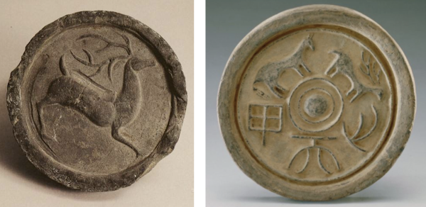 与此同时,人们还将石器时代的神鹿崇拜与“呦呦鹿鸣”的寓意相结合,构想出了天鹿意象。当君王施惠于民,泽被万物,天鹿就会化身白鹿降临人间,商周时期所出现的大量鹿形玉饰,以及战国至汉代建筑瓦当上的鹿纹装饰都蕴含了这种寓意(图6、7)。《艺文类聚·卷九十九》中引南梁孙柔之《瑞应图》载:“天鹿者,纯善之兽也,道备则白鹿见,王者明惠及下则见”,“王者承先圣法度,无所遗失,则白鹿来”;《开元占经·卷一百一十六·兽占》引《天镜》载,“王者仁明则白鹿至”,“爱民人,白鹿见”。天鹿往往化身白鹿,于是用白鹿皮做成的朝冠成为周天子和诸侯王每月朔日拜祭祖庙后,在太庙听政时的装束,据《仪礼·卷二·士冠礼第一》载,“皮弁服,素积,缁带,素韠”,郑玄注云,“此与君视朔之服也。皮弁者,以白鹿皮为冠,象上古也”,可见这一传统拥有非常悠久的历史。