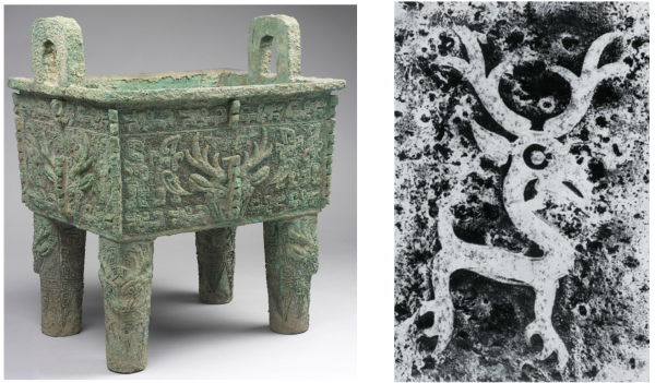 图3:鹿方鼎及腹底鹿形铭文,中国台湾中央研究院历史语言研究所藏
