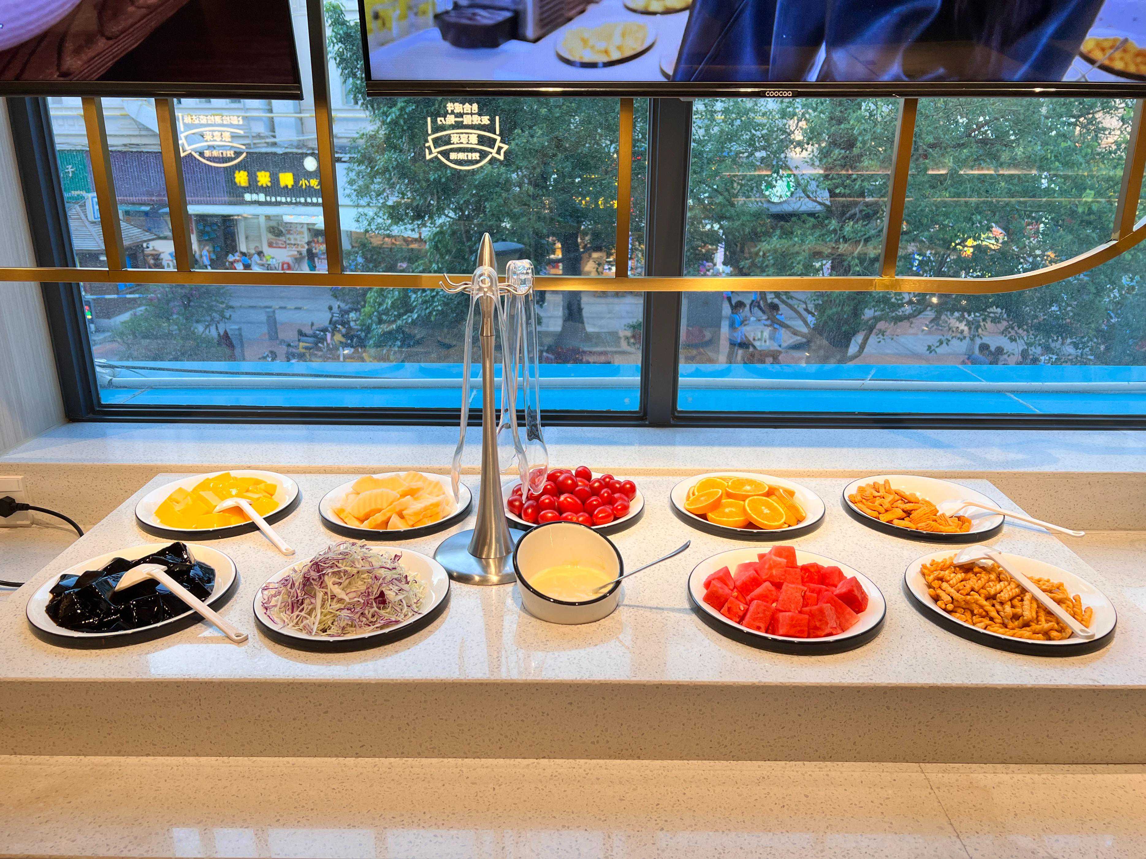 自助区不限量的水果、饮品、冰淇淋超级加分!没有小朋友能不爱自助冰淇淋啊~