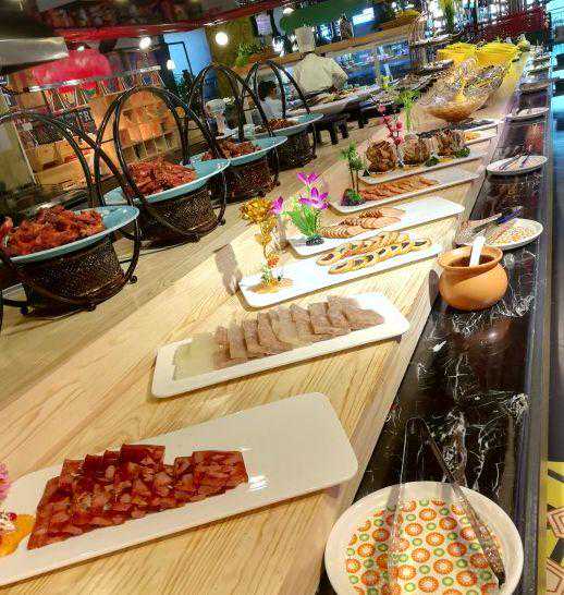 花样年华自助餐厅位于重庆路活力城6楼,很适合情侣来这里吃饭哦~吃完饭还能逛个街看个电影是吧!他家的菜品种类很多,融合菜,甜品,熟食,腊味,沙拉,铁板烧一应俱全,铁板类的食物做好了会用广播通知各位食客,十分人性化。除此之外,他家还有免费喝的瓶装鸡尾酒,非常赞!