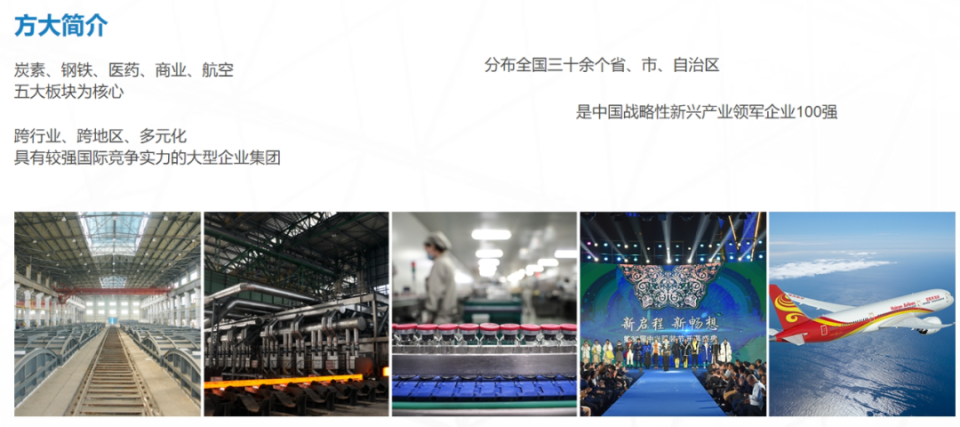 方威现任辽宁方大集团董事局主席。据官网显示,辽宁方大集团实业有限公司是一家以炭素、钢铁、医药、商业、航空五大板块为核心的跨行业、跨地区、多元化、具有较强国际竞争实力的大型企业集团,拥有员工近13万人。辽宁方大集团旗下拥有方大炭素、方大特钢、东北制药、中兴商业、海航控股五家大型上市公司和四家新三板挂牌公司。2019年方大集团销售收入和总资产突破“双千亿”,2023年集团发展继续保持稳中有进,销售收入突破3000亿元。2017年至2023年连续七年每年上缴税金超百亿元。