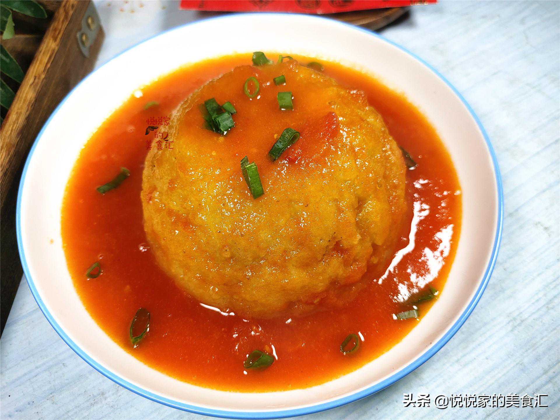 然后舀起料汁淋在土豆泥上即可,我们这道番茄土豆泥就大功告成了。用勺子挖开一口土豆,蘸着酸甜适口的茄汁,咸香入味口感绵粉,比买的还要好吃。