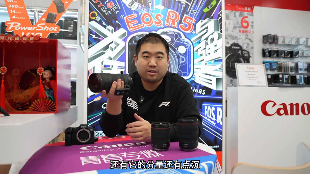 外观非常明显,把24-105外变焦拉到最长也差着大概有5厘米的距离。当然结合上它的大光圈以及它的变焦性能,可知道这个还是有必要做到这么大的。还有它的分量还有点沉,有点坠手,但是整体做工上能感觉到这只镜头的做工要优于24-105F4。