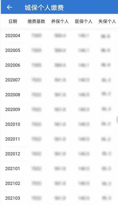 第三步:您可以在界面中查询到近一年的缴费基数和基本养老保险、医疗保险、失业保险的个人缴费额。