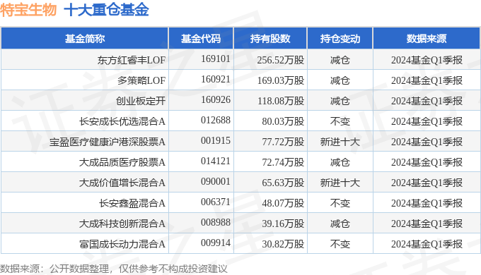 重仓特宝生物的前十大基金见下表:
