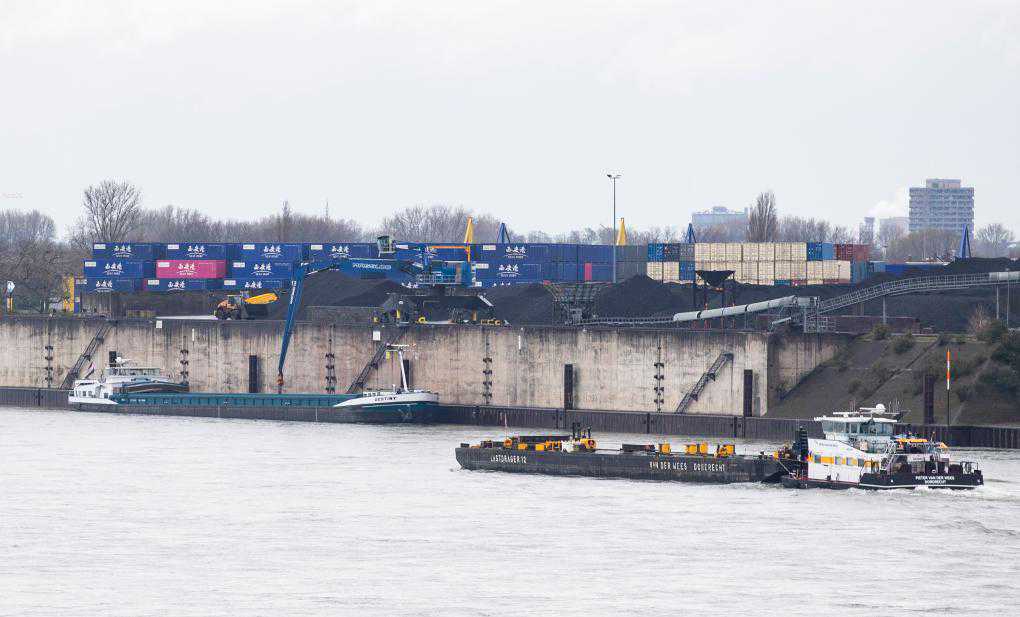 货轮排队停靠,火车鸣笛驶入货运场站,卡车搭载着印有“渝新欧”“义新欧”“西安港”等字样的集装箱往来奔驰……这座莱茵河畔的港口,一派繁忙景象。
