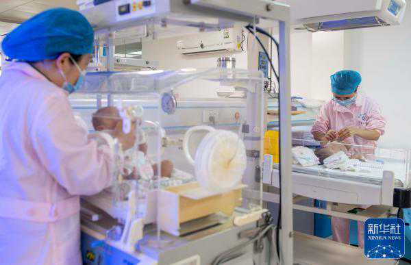 5月1日,护士在湖南省永州市道县人民医院新生儿科进行新生儿护理。新华社发(蒋克青摄)