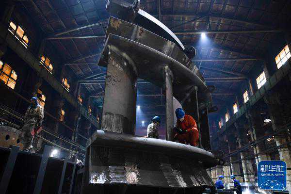 5月1日,工人在哈电集团哈尔滨电机厂有限责任公司冷作分厂生产车间作业。新华社记者张涛摄