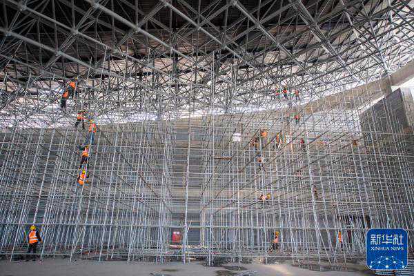 5月1日,工人在山西潇河国际会议中心建设现场施工。新华社记者杨晨光摄