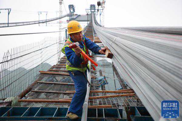 5月1日,工作人员在由中铁广州局承建的贵州金(金沙)仁(仁怀)桐(桐梓)高速桐梓河特大桥建设现场施工。新华社记者刘续摄