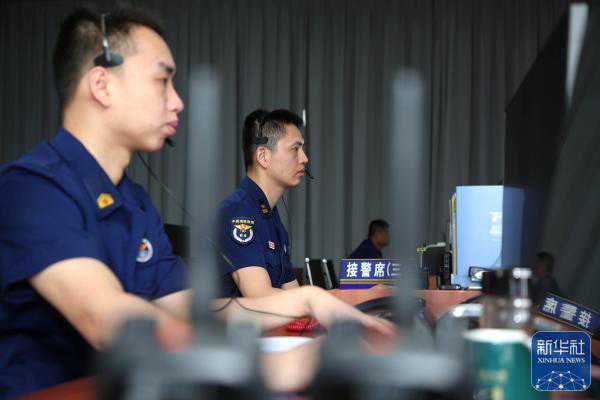 5月1日,在福建省龙岩市消防救援支队,接警员在受理警情。新华社发(周杨东摄)