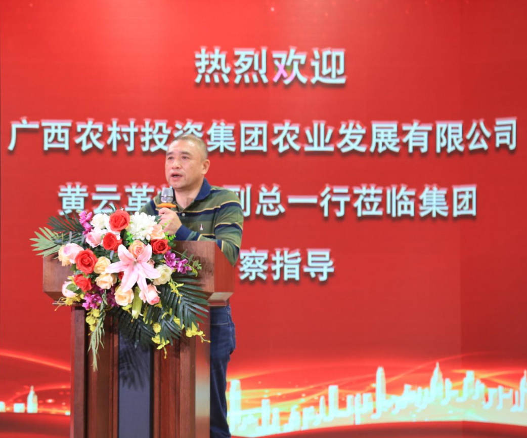 中慈控股集团战略发展顾问刘宇斌代表集团主席致欢迎词。简略介绍了中慈控股集团的发展历程、发展规划、发展优势,商业模式设计能力和市场拓展能力、营销实力。高度评价了广西农村投资集团农业发展有限公司与中慈控股集团深度合作的意义和重要性。他指出:双方合作开发以广西乡村振兴为核心的第一产业链,即生态农业、功能农业、观赏农业;盯紧农业科技创新和成果转化,促进初级农产品的深加工和活性功能修饰黑科技,打造第二产业链核心竞争力,助力健康中国事业;增强第三产业链的服务功能和市场经营能力,满足人民日益增长的生活需求。同时助力广西经济腾飞的综合性投资+服务平台。
