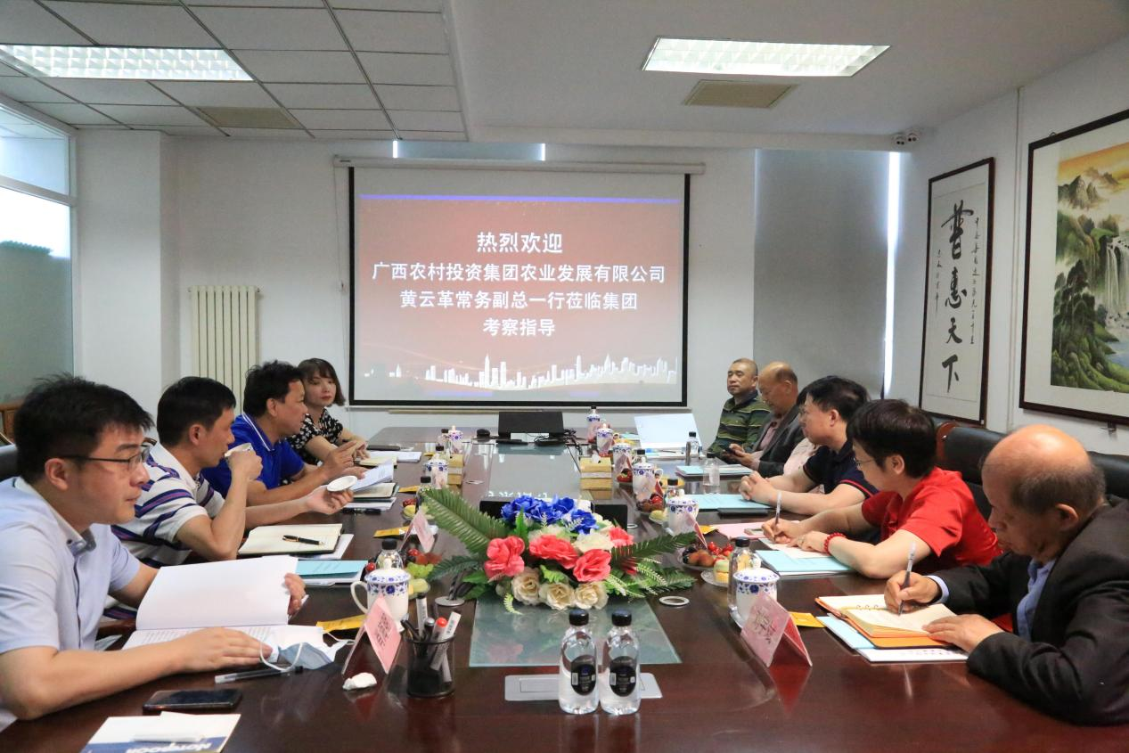 汇报会后,双方领导来到集团六楼小会议厅进行了深度沟通和交流,集团领导和专家及相关部门领导认真回答了广西农投集团提出的每一个问题。最后双方一致同意以“乡村振兴和三农经济发展”激励政策为导向,形成“功能农业和农产品深加工”的产业主体;以国内市场、国际市场双向循环为目标,全力打造健康产业生态共同体。要不断调整优化产业升级,加强与高端科技人才和科研机构紧密合作,形成强大的科研实力;加快推进双方股份合作性质的农投百岁工程管理集团组建工作,并在该集团旗下成立专业性科技开发公司和对应项目运营公司,实现优势互助,利益共享。