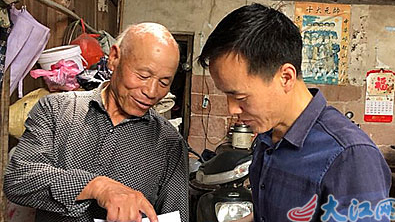 陈君亮(右)上门宣传扶贫政策